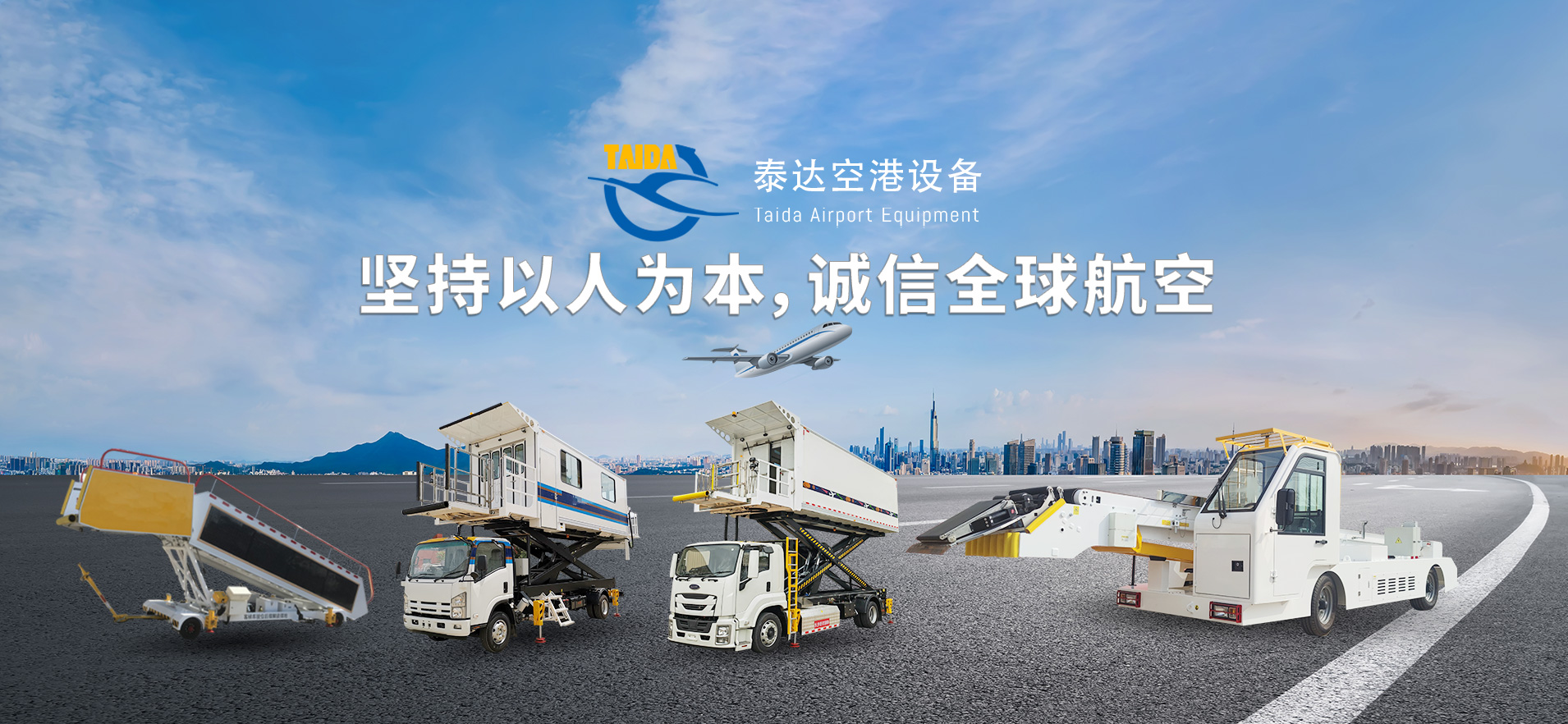 公司主要产品为:航空食品车、行李传送车、伸缩滚动式行李传送车、拖曳式传送车、行动不便旅客登机车、客梯车、手推式客梯车、机动式客梯车、太阳能手推式客梯车、飞机清水车、电动式清水车、拖曳式清水车、飞机污水车、电动式污水车、拖曳式污水车、飞机清洗车、航空垃圾接收车、飞机维修平台车、飞机 空调车、飞机电源车、行李牵引车、飞机牵引车、集装箱板拖车、集装箱拖车、散货车和行李手推车。