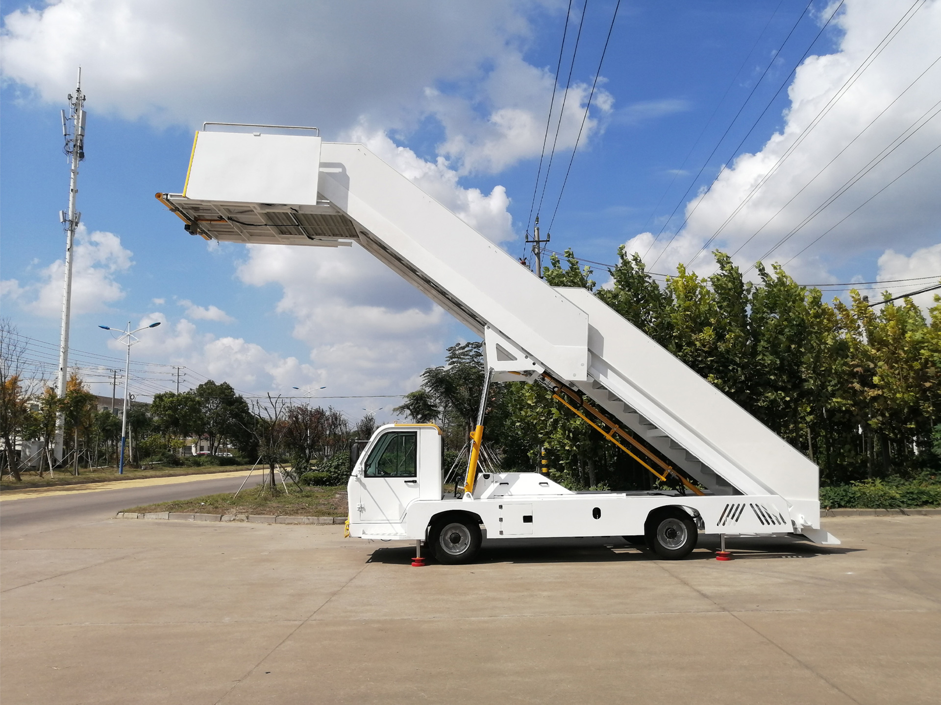 客梯车是一种用作旅客上下飞机的专用机动设备,分为自制底盘商用底盘两种,商用底盘也可根据客户需求选择不同品牌。采用智能化一键升梯,操作简单,可靠;采用双举升油缸,双锁齿条缸,更安全可靠;采用铝型材踏板,防滑更美观;采用 LED 灯,外型美观更实用;整车液压件和电气件均采用欧美品牌配置;车辆设置安全互锁和紧急解锁系统;车辆配置智能化管理系统和主动防撞系统,确保车辆运行更安全。